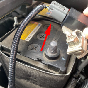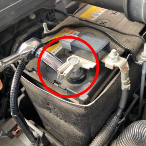 バッテリー(-端子)の横のナットを緩めます。 - 2バッテリー(-端子) 取外し(2)