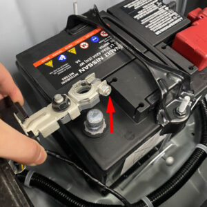 バッテリー(-端子)の横のナットを緩めます。 - 4バッテリー(-端子) 取外し(4)